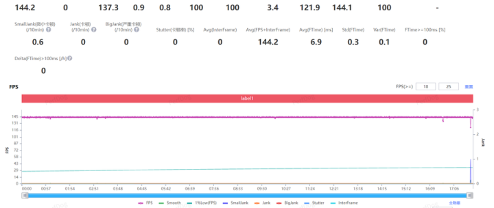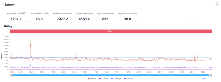 在《王者荣耀》极致144帧率模式下,一局排位战平均帧率达到144.2fps,即便在多人团战的高负载场景下,帧率也没有任何波动,全程丝滑顺畅,且平均功耗仅为4W,能耗控制十分出色。