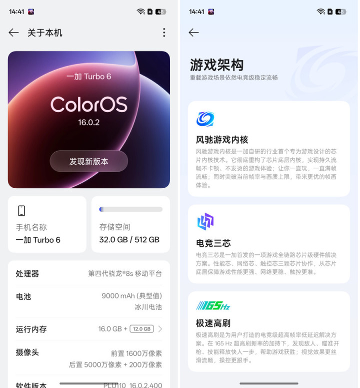 性能是一加Turbo6的核心优势,也是“机圈炫迈”口号的核心支撑。机型搭载同档唯一的第四代骁龙8s风驰版芯片,这是一加联合高通深度定制的旗舰级平台,注入了独家自研的“风驰游戏内核”,配合LPDDR5X内存与UFS4.1存储组成的“性能铁三角”,实现了性能的满血释放。