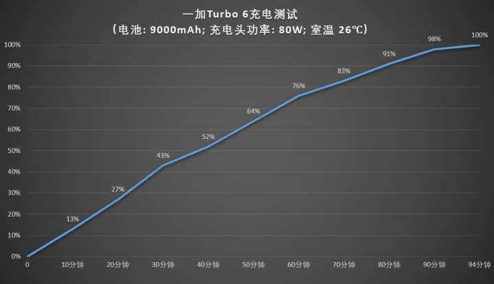 充电方面,一加Turbo6支持80W超级闪充,搭配智慧充电引擎,10分钟可充至13%的电量,40分钟即可将这块超大容量的电池充至一半以上电量,最后仅需94分钟就能将手机充至100%。而且针对游戏玩家,机型还配备了专属的“旁路充电”技术,插电游戏时电流直供系统,绕过电池,不仅能显著减少发热、缓解卡顿,还能有效保护电池健康,可以放心长时间边充边玩。