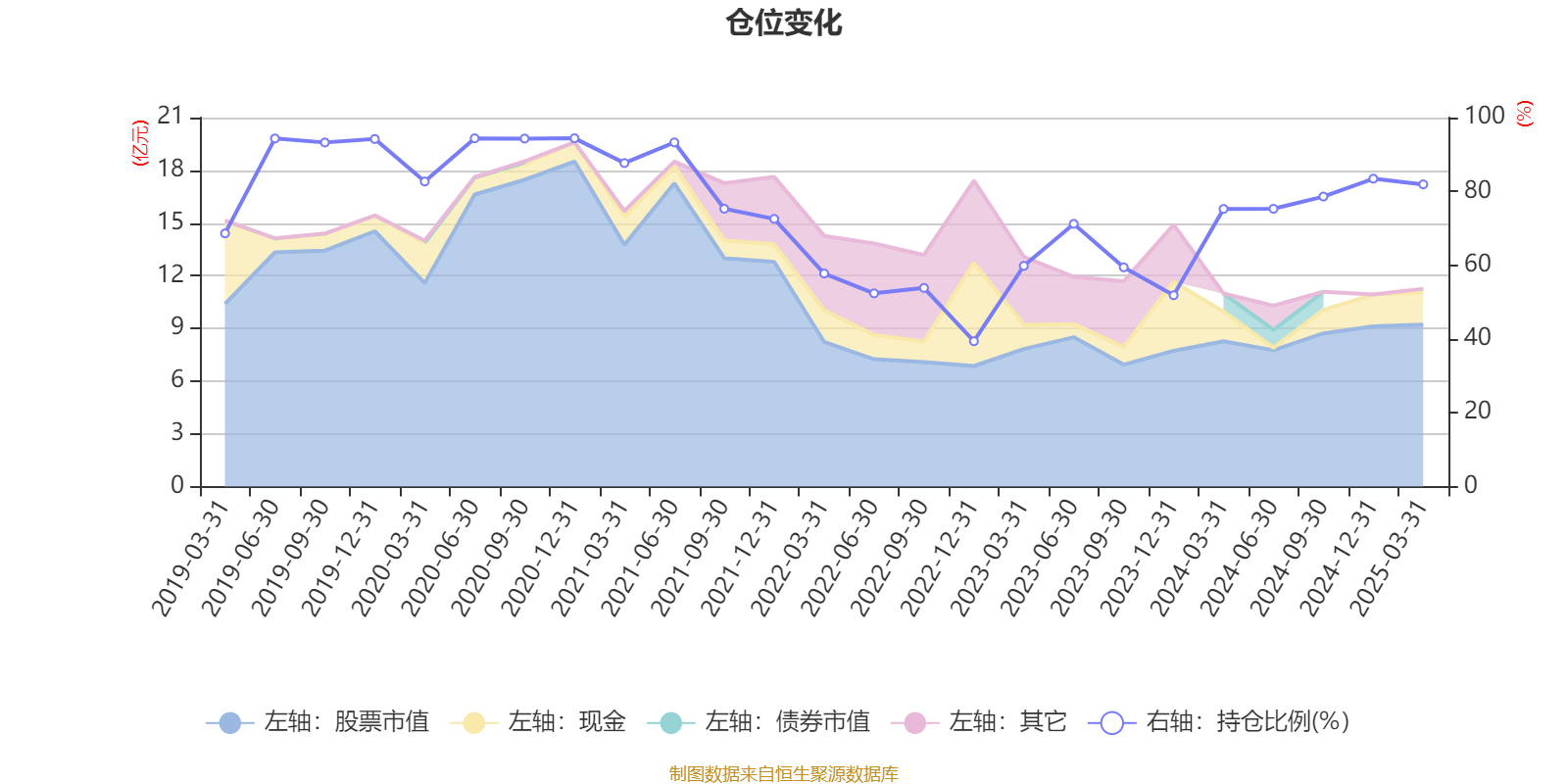 据定期报告数据统计,近三年平均股票仓位为65.2%,同类平均为80.2%。2020年末基金达到94.4%的最高仓位,2022年末最低,为39.39%。