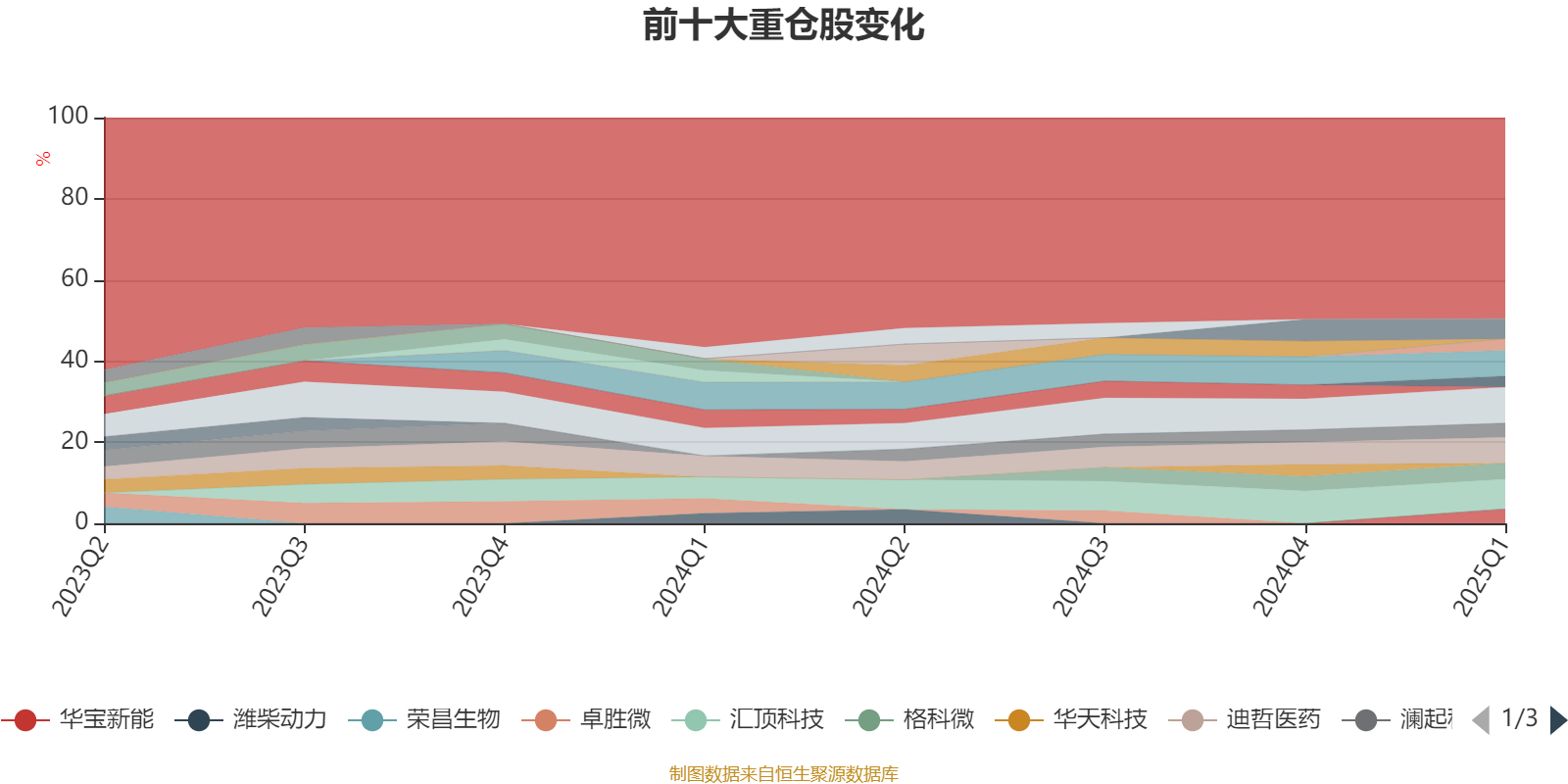 截至2025年一季度末,基金十大重仓股分别是百济神州、汇顶科技、迪哲医药、彩虹股份、赛微微电、格科微、华宝新能、澜起科技、风华高科、沪农商行。