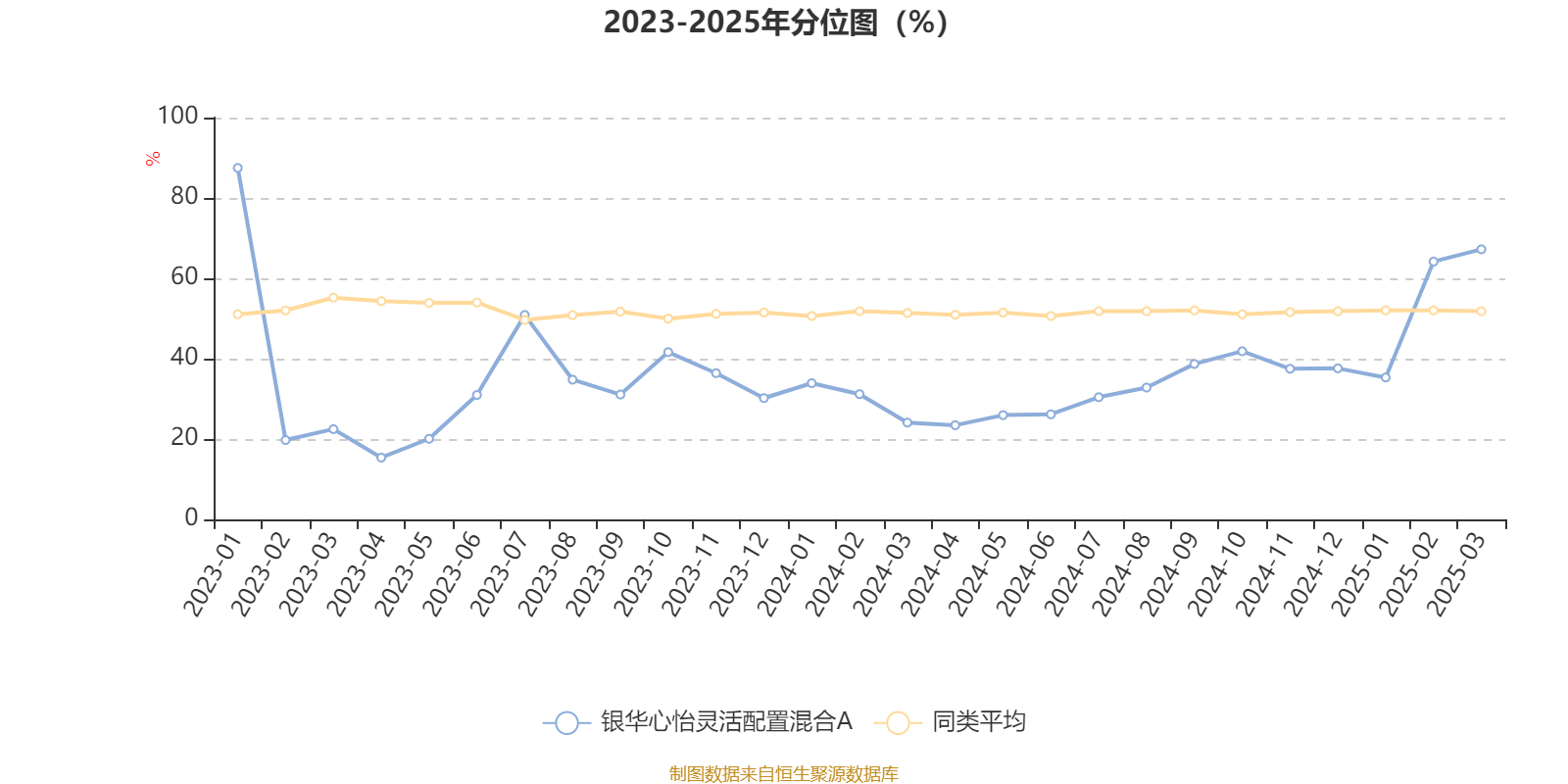 通过所选区间该基金净值增长率分位图,可以观察该基金与同类基金业绩比较情况。图为坐标原点到区间内某时点的净值增长率在同类基金中的分位数。